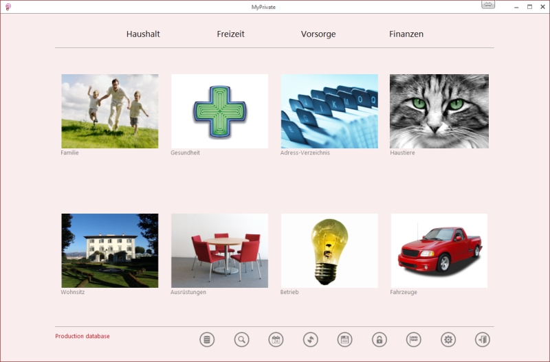 Familie ¦ Gesundheit ¦ Adressen ¦ Haustiere ¦ Wohnsitz ¦ Einrichtungen ¦ Betrieb ¦ Fahrzeuge